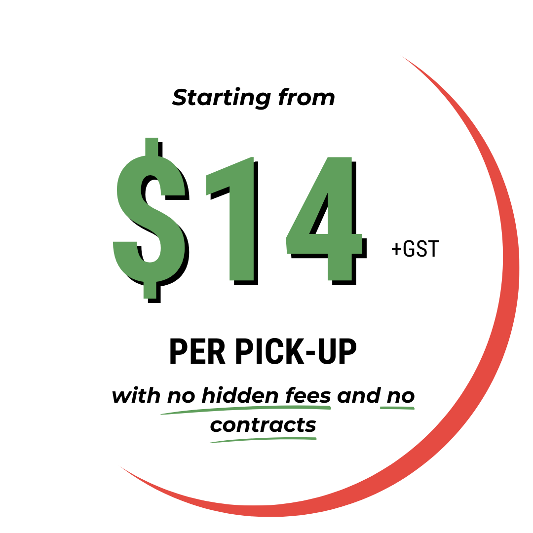 From $14 + GST per pickup, with no hidden fees or contracts.